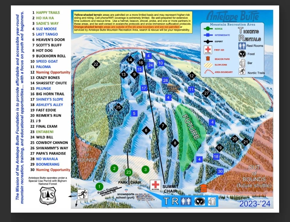 Download the latest Antelope Butte Piste Ski Trail Maps.